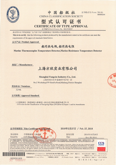 中國(guó)船級(jí)社型式認(rèn)可證書(shū)